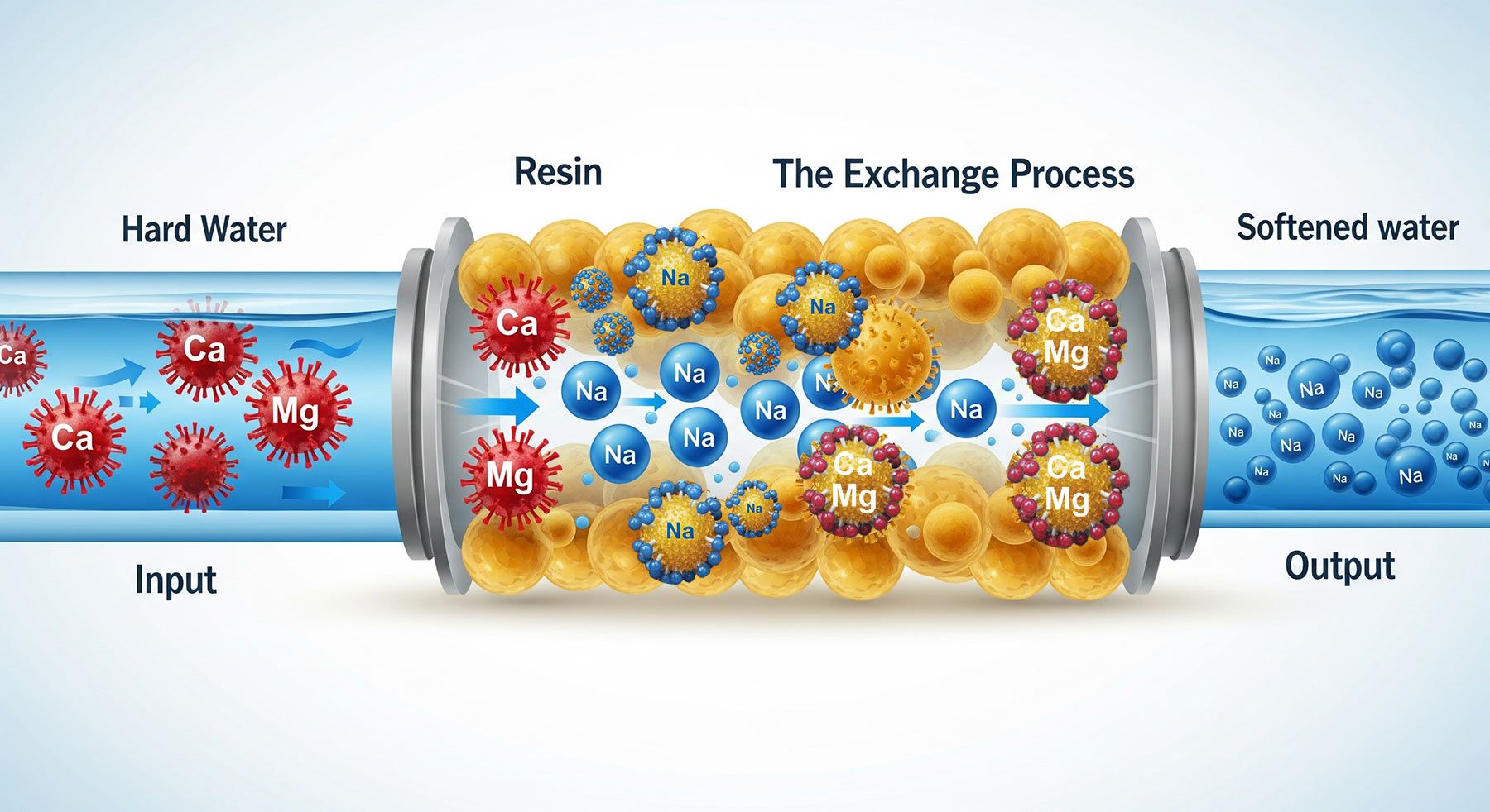 Imagine a powerful magnet that only attracts calcium and magnesium. Inside the main tank of a water softener are millions of tiny resin beads that act as this magnet. As your water flows through them, these beads grab and hold onto the hardness minerals, releasing harmless sodium or potassium ions in exchange. The result is truly soft water flowing to every faucet and appliance in your home.
